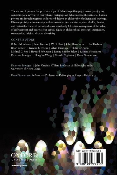 The nature of persons is a perennial topic of debate in philosophy, currently enjoying something of a revival. In this volume for the first time metaphysical debates about the nature of human persons are brought together with related debates in philosophy of religion and theology. Fifteen specially written essays explore idealist, dualist, and materialist views of persons, discuss specifically Christian conceptions of the value of embodiment, and address four central topics in philosophical theology: incarnation, resurrection, original sin, and the trinity.