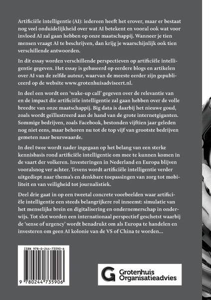 Artificiële intelligentie (AI): iedereen heeft het erover, maar er bestaat nog veel onduidelijkheid over wat AI betekent en vooral ook wat voor invloed AI zal gaan hebben op onze maatschappij. Wanneer je tien mensen vraagt AI te beschrijven, dan krijg je waarschijnlijk ook tien verschillende antwoorden. In dit essay worden verschillende perspectieven op artificiële intelligentie gegeven. Het essay is gebaseerd op eerdere blogs en artikelen over AI van de zelfde auteur, waarvan de meeste eerder zijn gepubliceerd op de website www.grotenhuisadviseert.nl.