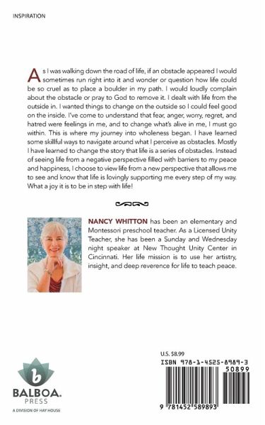 As I was walking down the road of life, if an obstacle appeared I would sometimes run right into it and wonder or question how life could be so cruel as to place a boulder in my path. I would loudly complain about the obstacle or pray to God to remove it. I dealt with life from the outside in. I wanted things to change on the outside so I could feel good on the inside. I've come to understand that fear, anger, worry, regret, and hatred were feelings in me, and to change what's alive in me, I must go within. This is where my journey into wholeness began. I have learned some skillful ways to navigate around what I perceive as obstacles. Mostly I have learned to change the story that life is a series of obstacles. Instead of seeing life from a negative perspective filled with barriers to my peace and happiness, I choose to view life from a new perspective that allows me to see and know that life is lovingly supporting me every step of my way. What a joy it is to be in step with life!