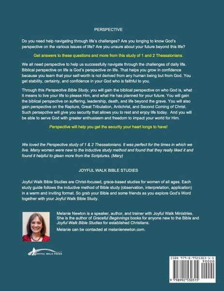 Do you need help navigating through life's challenges? Are you longing to know God's perspective on the various issues of life? Are you unsure about your future beyond this life? Get answers to these questions and more from this study of 1 and 2 Thessalonians. Perspective will help you gain the biblical perspective on who God is, what it means to live your life to please Him, and what He has planned for your future. You will gain the biblical perspective on suffering, leadership, death, and life beyond the grave. You will also gain perspective on the Rapture, Great Tribulation, Antichrist, and Second Coming of Christ. Then, you will get a security in Him that allows you to rest and enjoy life today. Get the security your heart longs to have! Get this Bible Study and unlock all that God has for you today and in the future.