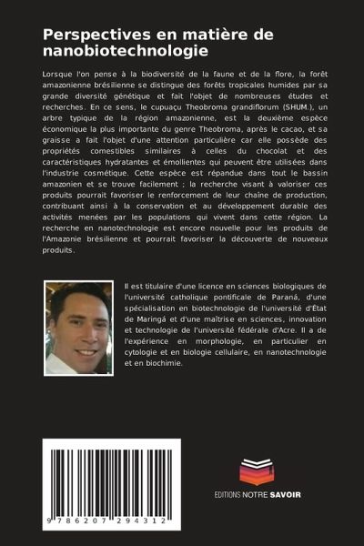 Lorsque l'on pense à la biodiversité de la faune et de la flore, la forêt amazonienne brésilienne se distingue des forêts tropicales humides par sa grande diversité génétique et fait l'objet de nombreuses études et recherches. En ce sens, le cupuaçu Theobroma grandiflorum (SHUM.), un arbre typique de la région amazonienne, est la deuxième espèce économique la plus importante du genre Theobroma, après le cacao, et sa graisse a fait l'objet d'une attention particulière car elle possède des propriétés comestibles similaires à celles du chocolat et des caractéristiques hydratantes et émollientes qui peuvent être utilisées dans l'industrie cosmétique. Cette espèce est répandue dans tout le bassin amazonien et se trouve facilement ; la recherche visant à valoriser ces produits pourrait favoriser le renforcement de leur chaîne de production, contribuant ainsi à la conservation et au développement durable des activités menées par les populations qui vivent dans cette région. La recherche en nanotechnologie est encore nouvelle pour les produits de l'Amazonie brésilienne et pourrait favoriser la découverte de nouveaux produits.