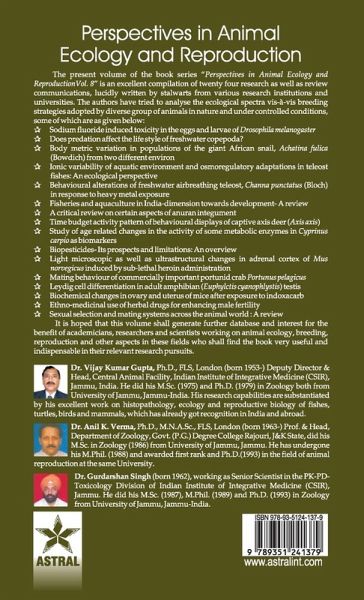 The present volume of the book series "Perspectives in Animal Ecology and Reproduction-Vol. 8" is an excellent compilation of twenty four research as well as review communications, lucidly written by stalwarts from various research institutions and universities. The authors have tried to analyse the ecological spectra vis--vis breeding strategies adopted by diverse group of animals in nature and under controlled conditions, some of which are as given below: (A) Sodium fluoride induced toxicity in the eggs and larvae of Drosophila melanogaster; (B) Does predation affect the life style of freshwater copepoda? (C) Body metric variation in populations of the giant African snail, Achatina fulica (Bowdich) from two different environ; (D) Ionic variability of aquatic environment and osmoregulatory adaptations in teleost fishes: An ecological perspective; (E) Behavioural alterations of freshwater airbreathing teleost, Channa punctatus (Bloch) in response to heavy metal exposure; (F) Fisheries and aquaculture in India-dimension towards development- A review; (G) A critical review on certain aspects of anuran integument; (H) Time budget activity pattern of behavioural displays of captive axis deer (Axis axis); (I) Study of age related changes in the activity of some metabolic enzymes in Cyprinus carpio as biomarkers; (J) Biopesticides- Its prospects and limitations: An overview; (K) Light microscopic as well as ultrastructural changes in adrenal cortex of Mus norvegicus induced by sub-lethal heroin administration; (L) Mating behaviour of commercially important portunid crab Portunus pelagicus; (M) Leydig cell differentiation in adult amphibian (Euphylctis cyanophlystis) testis; (N) Biochemical changes in ovary and uterus of mice after exposure to indoxacarb; (O) Ethno-medicinal use of herbal drugs for enhancing male fertility; (P) Sexual selection and mating systems across the animal world : A review. It is hoped that this volume shall generate further database and interest for the benefit of academicians, researchers and scientists working on animal ecology, breeding, reproduction and other aspects in these fields who shall find the book very useful and indispensable in their relevant research pursuits.