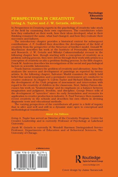 In Perspectives in Creativity experts in the psychology of creativity take stock of the field by examining their own experiences. The contributors relate how they embarked on their work, how their ideas developed, what in their thinking remained the same, what had changed, and how they evaluate their successes and failures. The introductory chapter provides a historical context for subsequent contributions. J. P. Guilford then describes the development of the field of creativity from the perspective of the Structure of Intellect model. Donald W. MacKinnon describes his work at the Institute of Personality Assessment and Research. J. W. Getzels and Mihalyi Csikszentmihalyi recount in the following chapter how, though starting with a conception of creativity as a problem-solving process, they were driven through their work with artists to a conception of creativity as also a problem-finding process. In the fifth chapter, Frank M. Andrews describes his investigations of the social and psychological factors in scientific laboratories. Frank Barron examines the problem of creativity and alienation. Anne Roe analyzes the sources and development of paintings as reported by twenty artists. In the following chapter, Salvatore Maddi examines the widely held belief that social integration and a permissive environment are conducive to creative endeavor. In chapter 9, Calvin Taylor and Richard Ellison describe the development of the Utah program of assessment and intervention with regard to the creativity of children in the classroom. Next, Sidney Parnes discusses his work on "brainstorming" and its emphasis on a balance between imagination and judgment, freedom, and discipline. George Prince tells of the development of "synectics" since its early formulation and recounts its application to creative production in industry. E. Paul Torrance then examines recent creativity in the schools and describes his own efforts in devising diagnostic tests and educational methods. The varying perspectives of the contributors all point to a field of inquiry that is alive and well and still in a dynamic state open to conceptual and methodological transformation.