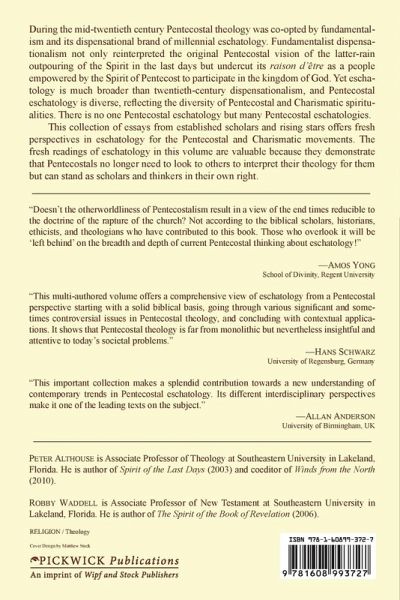 Peter Althouse is Assistant Professor of Theology at Southeastern University in Lakeland, Florida. He is author of Spirit of the Last Days (2003) and coeditor of Winds from the North (2010). Robby Waddell is Associate Professor of New Testament at Southeastern University in Lakeland, Florida. He is author of The Spirit in the Book of Revelation (2006).