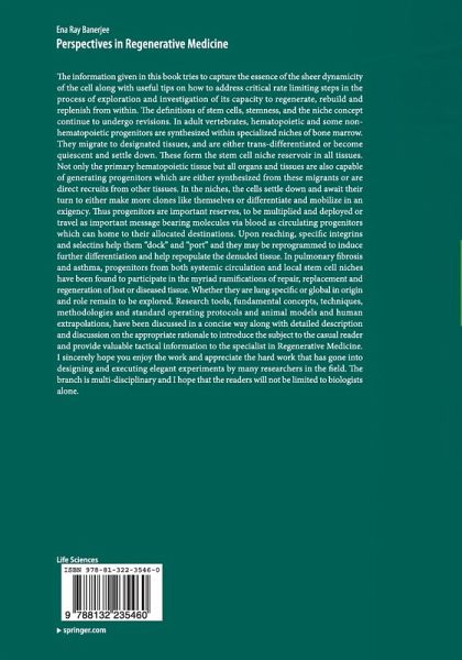 Chapter 1 Stem Cell and its Niche.- Sub-Chapter A. Stem Cell Niche in the Lung.- Sub-Chapter B. Other Stem Cell Niches.- Sub-chapter C. Mesenchymal Stem Cells.- Chapter 2A. Minireview of Stem Cell, Study Models & Effect of Trace Elements.- Chapter 3. Use of Stem Cells for Drug Screening.- Chapter4. Tissue Differentiation of ESC into Lung Cells & Functional Validation.- Chapter 5. Validation of Lung Stem Cell Niche.- Chapter 6. Model Organisms in Science & Research.- Chapter 7. Models for Studies in Regenerative Medicine.- Chapter 8 Role of Progenitors in Pulmonary Fibrosis and Asthma.- Chapter 9. Some Concepts in Studies of Kidney Regeneration.- Chapter 10. Ethics in Stem Cell Research.- Post Script.