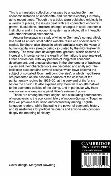This collection of essays covers themes central to German economic history while considering their interaction with other historical phenomena. Among the essays Borchardt considers Germany's late start as an industrial nation, the West-East developmental gradient, key patterns of long-term economic development, and unusual changes in the phenomena of business cycles. The collection also contains the essays which have become the subject of so-called 'Borchardt controversies', in which hypotheses are presented on the economic causes of the collapse of the parliamentary regime by 1929-30, at the very end of the 'crisis before the crisis'. He also explains why there were no alternatives to the economic policies of the slump, and in particular why there was no 'miracle weapon' against Hitler's seizure of power. These are among the most original and stimulating contributions of recent years to the economic history of modern Germany and will be of interest to anyone who ponders deeply the meaning of history.