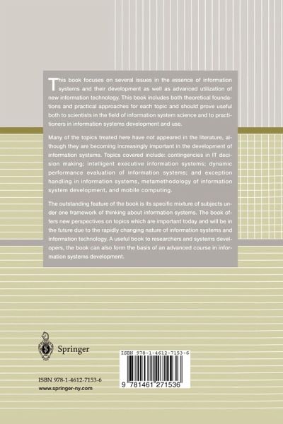 Information system science, defined broadly, is highly interdisciplinary because it can be seen as the effective analysis, design, delivery, use, and impact of infor mation technology in organizations and society. Many basic as well as advanced books on information systems and their development apply approaches and theo ries from such disciplines as technology, management science, economics, math ematics, psychology, sociology, and philosophy. Such new branches of information system science as mobile information systems, multimedia informa tion systems, telematic commerce, and cooperative work support systems have incorporated theories from such disciplines as organization science, education sciences, communication science, and musicology. Objectives and Uses of This Book This book focuses on various issues in information systems and their develop ment, as well as on the advanced utilization of new information technology. The fields and issues that are analyzed in this book have not been discussed in the same context in the current scientific literature, although they are becoming more important in information systems development. This book includes both theoreti cal foundations and practical approaches for each topic, and therefore it is of rel evance both to scientists of information systems and to practitioners in information systems development, introduction, and use. Large companies and software houses will also find this book useful in its discussion of methods for evaluating information technologies, systems, methodologies, and tools. Our col leagues have expressed a need for this kind of book. We offer new perspectives on key topics in information systems research.