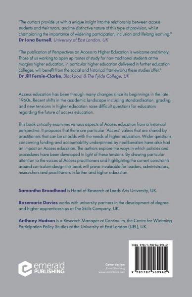 This book brings together researchers and practitioners to critically reflect upon the current diversity of Access to Higher Education programmes and their different perspectives on widening participation and access education.