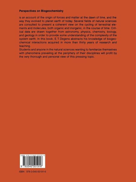 Perspectives on Biogeochemistry is an account of the origin of forces and matter at the dawn of time, and the way they evolved to planet Earth of today. Several fields of natural sciences are consulted to present a coherent view on the cycling of terrestrial elements and molecules, both organic and inorganic, in the course of time. Critical data are drawn together from astronomy, physics, chemistry, biology, and geology in order to provide some understanding of the complexity of the system Earth. In this book, E.T. Degens abstracts his knowledge of biogeochemical interactions acquired in more than thirty years of research and teaching. Students and anyone in the natural sciences wanting to familiarize themselves with phenomena prevailing at the periphery of their disciplines will profit by the very thorough and personal view of this pressing topic.