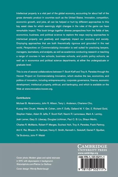 Intellectual property is a vital part of the global economy, accounting for about half of the GDP in countries like the United States. Innovation, competition, economic growth and jobs can all be helped or hurt by different approaches to this key asset class, where seemingly slight changes in the rules of the game can have remarkable impact. This book brings together diverse perspectives from the fields of law, economics, business and political science to explore the ways varying approaches to intellectual property can positively and negatively impact our economy and society. Employing approaches that are both theoretically rigorous and grounded in the real world, Perspectives on Commercializing Innovation is well suited for practising lawyers, managers, lawmakers and analysts, as well as academics conducting research or teaching in a range of courses in law schools, business schools and economics departments, at either the undergraduate or graduate level.