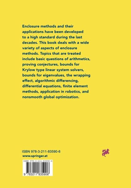 Enclosure methods and their applications have been developed to a high standard during the last decades. These methods guarantee the validity of the computed results, this means they are of the same standard as the rest of mathematics. This book deals with a wide variety of aspects of enclosure methods. All contributions follow the common goal to push the limits of enclosure methods forward. Topics that are treated include basic questions of arithmetic, proving conjectures, bounds for Krylow type linear system solvers, bounds for eigenvalues, the wrapping effect, algorithmic differencing, differential equations, finite element methods, application in robotics, and nonsmooth global optimization.