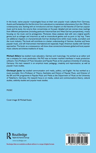 In this book, native popular musicologists focus on their own popular music cultures from Germany, Austria and Switzerland for the first time: from subcultural to mainstream phenomena; from the 1950s to contemporary acts. Starting with an introduction and two chapters on the histories of German popular music and its study, the volume then concentrates on focused, detailed and yet concise close readings from different perspectives (including particular historical East and West German perspectives), mostly focusing on the music and its protagonists. Moreover, these analyses deal with very original specific genres such as Schlager and Krautrock as well as transcultural genres such as Punk or Hip Hop. There are additional chapters on characteristically German developments within music media, journalism and the music industry. The book will contribute to a better understanding of German, Austrian and Swiss popular music, and will interconnect international and especially Anglo-American studies with German approaches. The book, as a consequence, will show close connections between global and local popular music cultures and diverse traditions of study.