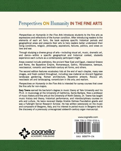 Perspectives on Humanity in the Fine Arts introduces students to the fine arts as expressions and reflections of the human condition. After introducing readers to the elements of each art form, the book explores specific historical periods and geographical areas and presents their arts to help readers better understand their living conditions, religion, philosophy, aspirations, failures, politics, and views on love and war. Through studying a diverse group of arts-including visual art, music, dramatic art, and dance-within a specific geographical and historical context, students experience each culture as a contemporary participant might. Areas covered include prehistory, the ancient Near East and Egypt, classical Greece and Rome, the Byzantine Empire, Romanesque, Gothic, Renaissance, baroque, neoclassical, romantic and twentieth-century art forms, and others. The second edition features vocabulary lists at the end of each chapter, many new images, and fresh content throughout, including new material on Ancient Egyptian landscape gardening; Roman architecture; Byzantine artwork; Rococo art; neoclassic art and landscaping; romanticism in the arts; and realism. Perspectives on Humanity in the Fine Arts is intended for survey courses that cover the fine arts for non-majors.