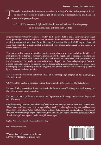 While Israel is a small country, it has a diverse and continually changing society. As a result, since the 1960s Israeli anthropology has been a fertile ground for researchers. This collection introduces readers to the diverse field of social anthropology in Israel today, pointing to both its rich history and promising future. Drawing upon recent research as well as a few key older articles, editors Esther Hertzog, Orit Abuhav, Harvey E. Goldberg, and Emanuel Marx have selected contributors that highlight different theoretical perspectives and touch on a variety of relevant topics. Perspectives on Israeli Anthropology begins with an introduction that traces the development of social anthropology in Israel from its beginnings in Palestine prior to Israeli statehood to the present. The essays in this volume are divided into five major thematic sections, including the effects of immigration, the influence of bureaucracies in social life, the negotiation of the social order, tensions between Jewish Israelis and Palestinian Arabs, and notions of "Israeliness" and "Jewishness." Essays offer compelling research and a variety of perspectives on changing senses of identity, ethnicity, religiosity, and gender relations in a society deeply affected by war, violence, and dispossession. While the contributors in this volume adhere to various theoretical and ethnographic traditions, they all treat Israel as a complex, modern, and open society with much to offer other scholars. Perspectives on Israeli Anthropology will provide an illuminating overview of the discipline for students, teachers, and researchers in the field of social anthropology.
