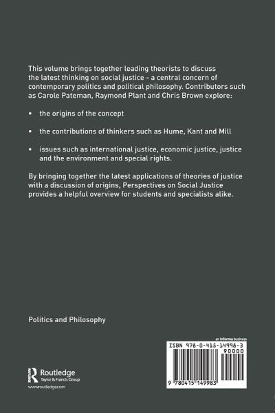 This volume brings together leading theorists to discuss the latest thinking on social justice - a central concern of contemporary politics and political philosophy. Contributors such as Carole Pateman, Raymond Plant and Chris Brown explore: * the origins of the concept * the contributions of thinkers such as Hume, Kant and Mill * issues such as international justice, economic justice, justice and the environment and special rights. By bringing together the latest applications of theories of justice with a discussion of origins, Perspectives on Social Justice provides a helpful overview for students and specialists alike.