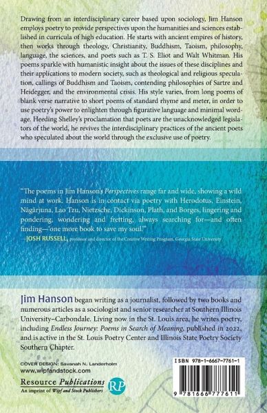 Drawing from an interdisciplinary career based upon sociology, Jim Hanson employs poetry to provide perspectives upon the humanities and sciences established in curricula of high education. He starts with ancient empires of history, then works through theology, Christianity, Buddhism, Taoism, philosophy, language, the sciences, and poets such as T. S. Eliot and Walt Whitman. His poems sparkle with humanistic insight about the issues of these disciplines and their applications to modern society, such as theological and religious speculation, callings of Buddhism and Taoism, contending philosophies of Sartre and Heidegger, and the environmental crisis. His style varies, from long poems of blank verse narrative to short poems of standard rhyme and meter, in order to use poetry's power to enlighten through figurative language and minimal wordage. Heeding Shelley's proclamation that poets are the unacknowledged legislators of the world, he revives the interdisciplinary practices of the ancient poets who speculated about the world through the exclusive use of poetry.