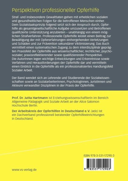Unterstützung anzubieten - unabhängig von einem möglichen Strafverfahren. Professionelle Opferhilfe leistet einen Beitrag zur Bewältigung der mit Opfererfahrungen einhergehenden Verletzungen und Schäden und zur Prävention sekundärer Viktimisierung. Das Buch vermittelt einen systematischen Zugang zu dem interdisziplinär geprägten Praxisfeld der Opferhilfe aus wissenschaftlicher, rechtlicher, psychosozialer, praxisreflektierender sowie qualifizierender Perspektive. Die AutorInnen legen wichtige Entwicklungen und Erkenntnisse sowie Verfahren und Herausforderungen der Opferhilfe dar und vermitteln einen Einblick in die Opferhilfe als ein professionalisiertes Handlungsfeld Sozialer Arbeit. Der Band wendet sich an Lehrende und Studierende der Sozialwissenschaften sowie an SozialarbeiterInnen, PsychologInnen, JuristInnen und Akteure verwandter Disziplinen in der Praxis der Opferhilfe.