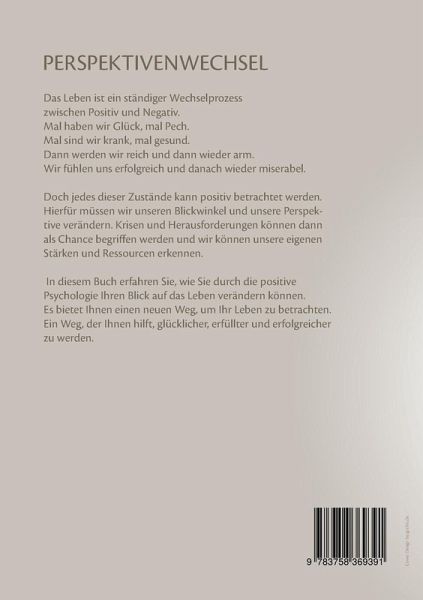 Das Leben ist ein ständiger Wechselprozess zwischen Positiv und Negativ. Mal haben wir Glück, mal Pech. Mal sind wir krank, mal gesund. Dann werden wir reich und dann wieder arm. Wir fühlen uns erfolgreich und danach wieder miserabel.Doch jedes dieser Zustände kann positiv betrachtet werden. Hierfür müssen wir unseren Blickwinkel und unsere Perspektive verändern. Krisen und Herausforderungen können dann als Chance begriffen werden und wir können unsere eigenen Stärken und Ressourcen erkennen.In diesem Buch erfahren Sie, wie Sie durch die positive Psychologie Ihren Blick auf das Leben verändern können. Es bietet Ihnen einen neuen Weg, um Ihr Leben zu betrachten. Ein Weg, der Ihnen hilft, glücklicher, erfüllter und erfolgreicher zu werden.