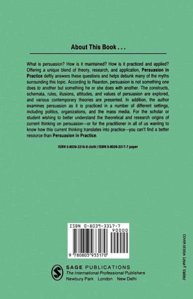 What is persuasion? How is it maintained? How is it practised and applied? Offering a unique blend of theory, research and application, this volume deftly answers these questions and helps debunk many of the myths surrounding this topic. The constructs, schemata, rules, illusions, attitudes and values of persuasion are explored and various contemporary theories are presented. In addition, the author examines persuasion as it is practised in a number of different settings, including politics, organizations and the mass media.