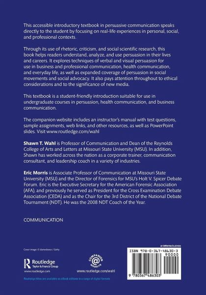 This accessible introductory textbook in persuasive communication speaks directly to the student by focusing on real-life experiences in personal, social, and professional contexts. Through its use of rhetoric, criticism, and social scientific research, this book helps readers understand, analyze, and use persuasion in their lives and careers. It explores techniques of verbal and visual persuasion for use in business and professional communication, health communication, and everyday life, as well as expanded coverage of persuasion in social movements and social advocacy. It also pays attention throughout to ethical considerations and to the significance of new media. This textbook is a student-friendly introduction suitable for use in undergraduate courses in persuasion, health communication, and business communication. The companion website includes an instructor's manual with test questions, sample assignments, web links, and other resources, as well as PowerPoint slides. Visit www.routledge.com/wahl