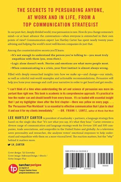 In Persuasion, Lee Carter puts a science behind the art of persuasion. She gives clear instruction on how to affect change through communication. Everyone from CEO s to school teachers, parents to pastors, will find this book deeply helpful. Many of the largest corporations in the world hire Lee Carter to help them communicate effectively. In Persuasion, she shares her best advice with us. If you want to communicate in a way that leads to change, read this book and apply it.