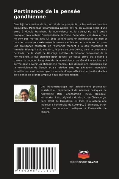 Gandhiji, incarnation de la paix et de la prospérité, a les mêmes besoins aujourd'hui. Mohandas karamchanda Gandhi est né au Gujarat armé d'une arme à double tranchant, la non-violence et la satyagrah, qu'il devait pratiquer pour obtenir l'indépendance de l'Inde. Cependant, ces deux armes ne sont pas mortes avec lui. Elles sont restées en permanence en Inde et dans le monde pour exterminer la violence et laisser le monde en paix pour une croissance constante de l'humanité menant à la paix matérielle et mentale. Bien qu'il soit trop tard, la prise de conscience, dans la conscience de l'Inde, de la vérité de Gandhiji, autrefois fermement convaincue de la non-violence, a été planifiée pour devenir un vaste arbre qui s'étend à travers le monde. La graine de la non-violence de Gandhi a rapidement germé pour devenir un phénomène mondial. Les discussions mondiales sur la non-violence de Gandhi et sa relation avec les situations mondiales actuelles en sont un exemple. Le monde d'aujourd'hui est le théâtre d'actes de violence de grande ampleur sous diverses formes.