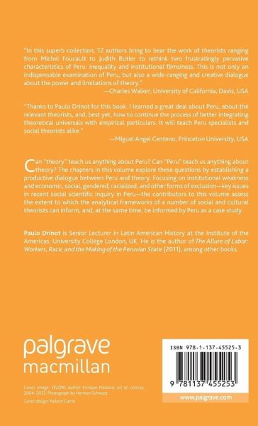 Can 'theory' teach us anything about Peru? Can 'Peru' teach us anything about theory? The chapters in this volume explore these questions by establishing a productive dialogue between Peru and theory. Focusing on institutional weakness and economic, social, gendered, racialized, and other forms of exclusion key issues in recent social scientific inquiry in Peru - the contributors to this volume assess the extent to which the analytical frameworks of a number of social and cultural theorists can inform, and, at the same time, be informed by, Peru as a case study.