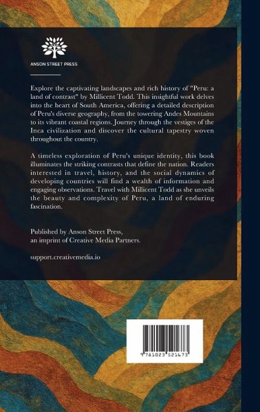 Explore the captivating landscapes and rich history of "Peru: a land of contrast" by Millicent Todd. This insightful work delves into the heart of South America, offering a detailed description of Peru's diverse geography, from the towering Andes Mountains to its vibrant coastal regions. Journey through the vestiges of the Inca civilization and discover the cultural tapestry woven throughout the country. A timeless exploration of Peru's unique identity, this book illuminates the striking contrasts that define the nation. Readers interested in travel, history, and the social dynamics of developing countries will find a wealth of information and engaging observations. Travel with Millicent Todd as she unveils the beauty and complexity of Peru, a land of enduring fascination. This work has been selected by scholars as being culturally important, and is part of the knowledge base of civilization as we know it. This work is in the public domain in the United States of America, and possibly other nations. Within the United States, you may freely copy and distribute this work, as no entity (individual or corporate) has a copyright on the body of the work. Scholars believe, and we concur, that this work is important enough to be preserved, reproduced, and made generally available to the public. We appreciate your support of the preservation process, and thank you for being an important part of keeping this knowledge alive and relevant.