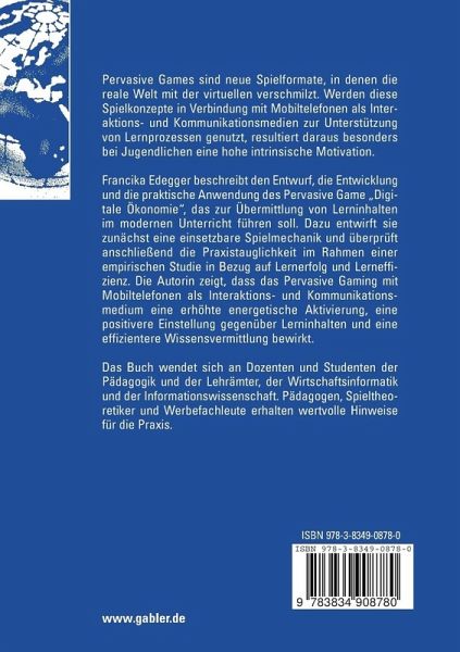 Francika Edegger beschreibt den Entwurf, die Entwicklung und die praktische Anwendung des Pervasive Game "Digitale Ökonomie", das zur Übermittlung von Lerninhalten im modernen Unterricht führen soll. Dazu entwirft sie zunächst eine einsetzbare Spielmechanik und überprüft anschließend die Praxistauglichkeit im Rahmen einer empirischen Studie in Bezug auf Lernerfolg und Lerneffizienz. Die Autorin zeigt, dass das Pervasive Gaming mit Mobiltelefonen als Interaktions- und Kommunikationsmedium eine erhöhte energetische Aktivierung, eine positivere Einstellung gegenüber Lerninhalten und eine effizientere Wissensvermittlung bewirkt.