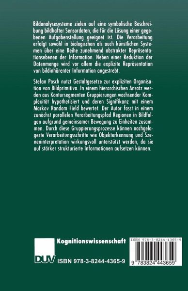Bildanalysesysteme zielen auf eine symbolische Beschreibung bildhafter Sensordaten, die für die Lösung einer gegebenen Aufgabenstellung geeignet ist. Die Verarbeitung erfolgt sowohl in biologischen als auch künstlichen Systemen über eine Reihe zunehmend abstrakter Repräsentationsebenen der Information. Neben einer Reduktion der Datenmenge wird vor allem die explizite Repräsentation von bildinhärenter Information angestrebt. Stefan Posch nutzt Gestaltgesetze zur expliziten Organisation von Bildprimitiva. In einem hierarchischen Ansatz werden aus Kontursegmenten Gruppierungen wachsender Komplexität hypothetisiert und deren Signifikanz mit einem Markov Random Field bewertet. Der Autor fasst in einem zunächst parallelen Verarbeitungspfad Regionen in Bildfolgen aufgrund gemeinsamer Bewegung zu Einheiten zusammen. Durch diese Gruppierungsprozesse können nachgelagerte Verarbeitungsschritte wie Objekterkennung und Szeneninterpretation wirkungsvoll unterstützt werden, da sie auf stärker strukturierte Informationen aufsetzen können.