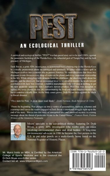 A satirical and ecological thriller, "PEST" is a fast-paced story set in the mid 1990's, against the panoramic backdrop of the Florida Keys, the industrial port of Tampa Bay and the lush greenery of Michigan. Derk Bryan, a gritty EPA investigator, is summoned from a fishing trip in the Florida Keys by a deadly premonition about his estranged and terminally ill father while a minor spill in Michigan evolves into a sinister plot to poison America. He soon discovers that these two disparate events threaten every drop of water on the planet and every important relationship in his life. While struggling with demons from his childhood, the shocking truth about his parents, and the discovery that an unrequited lover is involved in murder, he heads toward a collision with Jack Von Lleuwan, a ruthless manufacturer who will stop at nothing to get his new pesticide approved, Von Lleuwan's newest product, PESTfree was designed to replace the toxic chemicals that are contaminating the food and water supplies worldwide, but it contains a deadly flaw. As the body count grows, Derk Bryan races against the clock to thwart disaster.