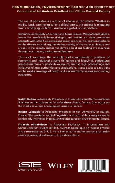 The use of pesticides is a subject of intense public debate. Whether in media, legal, terminological or political terms, the subject is migrating from a strictly agricultural universe to a global, social problem. Given the complexity of current and future issues, Pesticides provides a forum for multidisciplinary dialogue and debate on plant protection products within the humanities and social sciences. It presents reflections on the discursive and argumentative activity of the various players and arenas in the debate, and on the development and testing of consensus through controversy and counter-discourse. This book examines the scientific and communication practices of economic and industrial players (influence and lobbying), agricultural practices in terms of pesticide exposure, and the legal proceedings and initiatives of local authorities and associations. It also seeks to shed light on the media coverage of health and environmental issues surrounding pesticides.