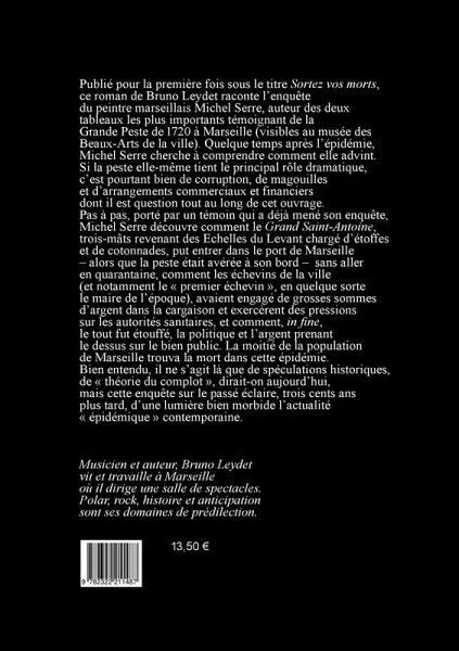 Publié pour la première fois sous le titre "Sortez vos morts", ce romande Bruno Leydet retrace l'enquête du peintre marseillais Michel Serre, auteur des deux tableaux les plus importants témoignant de la Grande Peste de 1720 à Marseille. Quelque temps après l'épidémie, Michel Serre cherche à comprendre comment elle advint. Si la peste elle-même tient ici le principal rôle dramatique, c'est pourtant bien de corruption, de magouilles et d'arrangements commerciaux et financiers qu'il est question tout au long de cet ouvrage. Pas à pas, porté par un témoin qui a déjà mené une enquête, Michel Serre découvre comment le "Grand Saint-Antoine", trois-mâts revenant des Echelles du Levant chargé d'étoffes et de cotonnades, put entrer dans le port de Marseille sans aller en quarantaine alors que la peste était avérée à son bord, comment les échevins de la ville, qui avaient engagé beaucoup d'argent dans sa cargaison, firent pression sur les autorités sanitaires et comment, in fine, le tout fut étouffé, la politique et l'argent prenant le dessus sur le bien public.