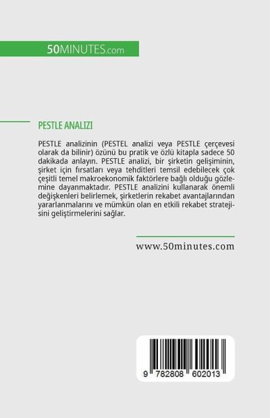 PESTLE analizinin (PESTEL analizi veya PESTLE çerçevesi olarak da bilinir) özünü bu pratik ve özlü kitapla sadece 50 dakikada anlay¿n. PESTLE analizi, bir ¿irketin geli¿iminin, ¿irket için f¿rsatlar¿ veya tehditleri temsil edebilecek çok çe¿itli temel makroekonomik faktörlere bäl¿ oldu¿u gözlemine dayanmaktad¿r. PESTLE analizini kullanarak önemli de¿i¿kenleri belirlemek, ¿irketlerin rekabet avantajlar¿ndan yararlanmalar¿n¿ ve mümkün olan en etkili rekabet stratejisini geli¿tirmelerini sälar. Bu kitap, yeni bir i¿, proje veya ürün bälat¿rken, bir ¿irketi yeniden düzenlerken ve bir pazarlama stratejisi geli¿tirirken PESTLE analizinin uygulamalar¿na faydal¿ bir giri¿ sälar. Ayr¿ca, gerçek hayattan vaka çal¿¿malar¿, arac¿n göreceli objektiflik eksikli¿i de dahil olmak üzere eksikliklerinin tart¿¿¿lmas¿ ve SWOT analizi ve Porter'¿n be¿ gücü gibi ilgili modellere bir giri¿ içermektedir. PESTLE analizi hakk¿nda PESTLE analizi, belirli bir bälamda bir kurulu¿la ilgili makroekonomik de¿i¿kenleri analiz etmeyi amaçlamaktad¿r. Daha spesifik olarak, yöneticilerin politik, ekonomik, sosyo-kültürel, teknolojik, yasal ve çevresel de¿i¿kenleri tan¿mlamalar¿n¿ ve bu faktörlere dayanarak gelecekte neler olabilece¿ini tahmin etmelerini sälar. Bu da onu bir i¿ plan¿ haz¿rlamak, üretim veya pazarlama stratejileri geli¿tirmek ve yeni ürünlerin piyasaya sürülmesini planlamak için de¿erli bir araç haline getirir. Bu kitapta, PESTLE analizinin size nas¿l yard¿mc¿ olabilece¿ini ke¿fedecek, i¿letmenizi etkileyen makroekonomik de¿i¿kenleri nas¿l s¿n¿fland¿racä¿n¿z¿ ö¿renecek ve bulgular¿n¿z¿ gelece¿e yönelik etkili bir planlama yapmak için kullanacaks¿n¿z. Yöntemin avantajlar¿n¿n ve olas¿ dezavantajlar¿n¿n net bir ¿ekilde aç¿klanmas¿, pratik bir vaka çal¿¿mas¿n¿n tart¿¿¿lmas¿ ve ilgili modellere giri¿ yap¿lmas¿, yaklä¿m¿n¿z¿ durumunuza göre uyarlaman¿z için gereken araçlar¿ sälar.