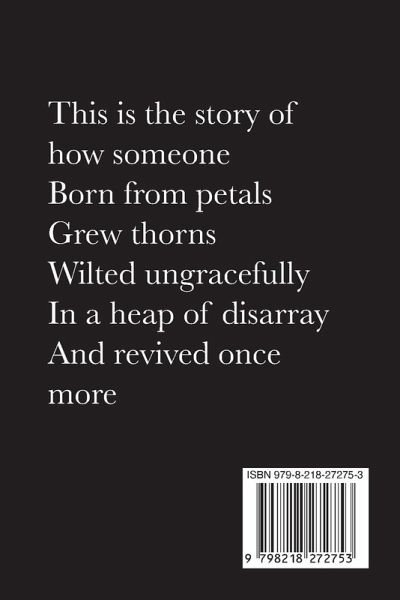 This is a collection of poems written in my late teen years. It starts at a time of heartbreak, self-harm, depression, grief and overwhelming sadness. The middle shows the journey I took to find myself and shows how I found joy in nature, my friends and family, but most importantly learning to love myself. The final part are poems of finding new healthy love.