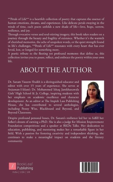 **Petals of Life** is a heartfelt collection of poetry that captures the essence of human emotions, dreams, and experiences. Like delicate petals swaying in the winds of time, each poem unfolds a new shade of life-love, hope, sorrow, resilience, and joy. Through evocative verses and soul-stirring imagery, this book takes readers on a journey through the beauty and fragility of existence. Whether it's the warmth of cherished memories, the ache of unspoken words, or the quiet strength found in life's challenges, **Petals of Life** resonates with every heart that has ever loved, lost, or longed for something more. A poetic tribute to the fleeting yet profound moments that define us, this collection invites you to pause, reflect, and embrace the poetry within your own life.