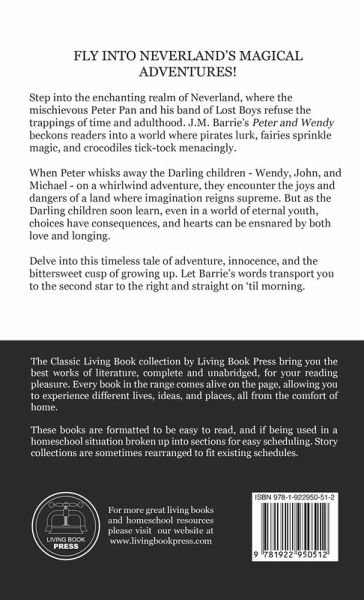 Step into the enchanting realm of Neverland, where the mischievous Peter Pan and his band of Lost Boys refuse the trappings of time and adulthood. J.M. Barrie's Peter and Wendy beckons readers into a world where pirates lurk, fairies sprinkle magic, and crocodiles tick-tock menacingly. When Peter whisks away the Darling children - Wendy, John, and Michael - on a whirlwind adventure, they encounter the joys and dangers of a land where imagination reigns supreme. But as the Darling children soon learn, even in a world of eternal youth, choices have consequences, and hearts can be ensnared by both love and longing. Delve into this timeless tale of adventure, innocence, and the bittersweet cusp of growing up. Let Barrie's words transport you to the second star to the right and straight on 'til morning.
