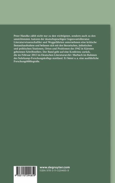 "Die Beschäftigung mit Peter Handke ist ein Politikum - und noch sehr viel mehr als das, wie der Band "Peter Handke. Stationen, Orte, Positionen" beweist, der aus Anlass einer gleichnamigen Tagung, die 2012 im Deutschen Literaturarchiv Marbach stattfand, entstanden ist."