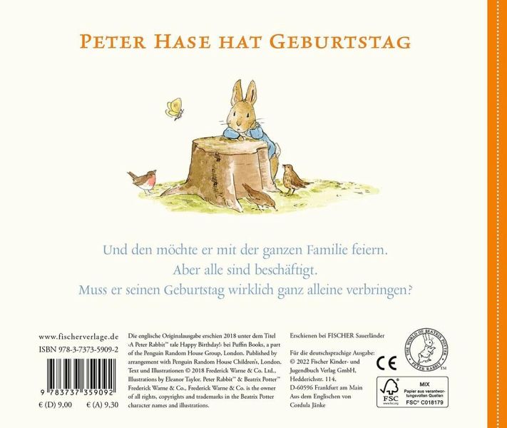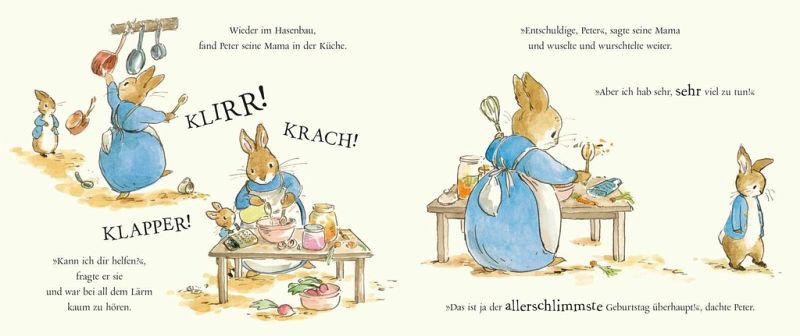 Peter Hase hat heute Geburtstag! Aber will denn niemand mit ihm feiern? Seine kleinen Schwestern beachten ihn nicht, Benjamin Kanin hoppelt einfach davon und seine Mama ist in der Küche beschäftigt. Peter Hase ist traurig. Das ist ja der allerschlimmste Geburtstag! Plötzlich hört er Stimmen, draußen vor seinem Fenster. Neugierig folgt Peter Hase dem Klang auf der großen Wiese. Und da ist seine ganze Familie versammelt. Mit Blumen, Kuchen und Geschenken. Und alle rufen: »Herzlichen Glückwunsch, Peter Hase!« Das ist das schönste Geburtstagsfest, denkt Peter Hase und bekommt ein schönes und warmes Gefühl im Bauch.