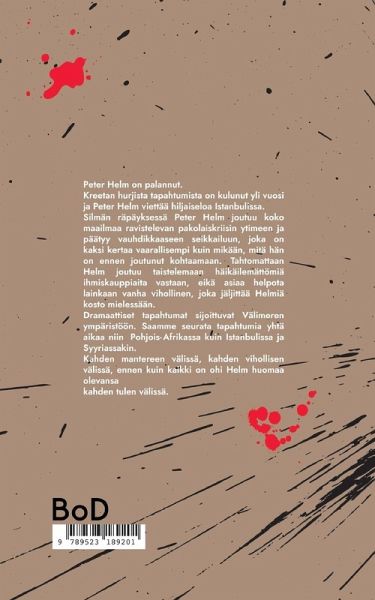 Peter Helm on palannut. Kreetan hurjista tapahtumista on kulunut yli vuosi ja Peter Helm viettää hiljaiseloa Istanbulissa. Silmän räpäyksessä Peter Helm joutuu koko maailmaa ravistelevan pakolaiskriisin ytimeen ja päätyy vauhdikkaaseen seikkailuun, joka on kaksi kertaa vaarallisempi kuin mikään, mitä hän on ennen joutunut kohtaamaan. Tahtomattaan Helm joutuu taistelemaan häikäilemättömiä ihmiskauppiaita vastaan, eikä asiaa helpota lainkaan vanha vihollinen, joka jäljittää Helmiä kosto mielessään. Dramaattiset tapahtumat sijoittuvat Välimeren ympäristöön. Saamme seurata tapahtumia yhtä aikaa niin Pohjois-Afrikassa kuin Istanbulissa ja Syyriassakin. Kahden mantereen välissä, kahden vihollisen välissä, ennen kuin kaikki on ohi Helm huomaa olevansa kahden tulen välissä.
