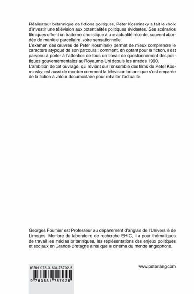 L'ambition de cet ouvrage, qui revient sur l'ensemble des films de Peter Kosminsky, est aussi de montrer comment la télévision britannique s'est emparée de la fiction à valeur documentaire pour retraiter l'actualité.