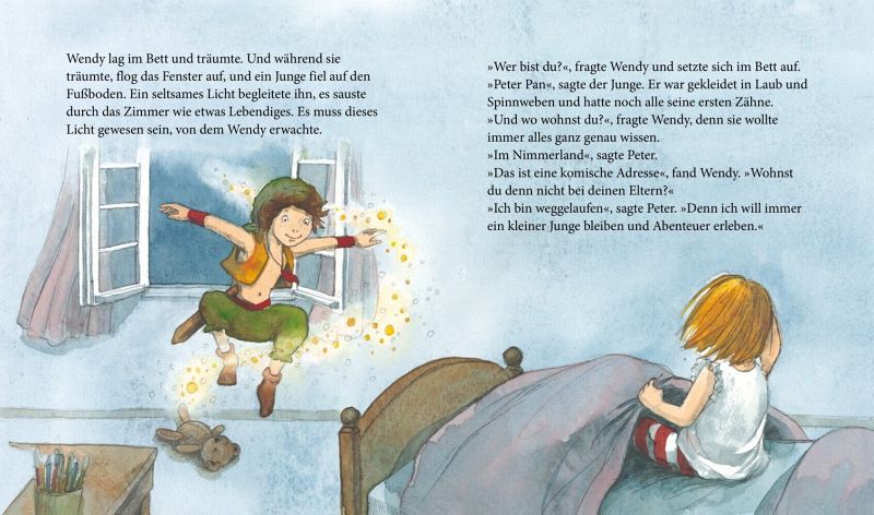 Eines Nachts taucht ein seltsamer Junge in Wendys Kinderzimmer auf - er nennt sich Peter, kann fliegen und hat sogar eine echte Elfe dabei. Wendy lässt sich überreden mit ihm nach Nimmerland zu fliegen. Und was Wendy dort erwartet, hätte sie nich einmal zu träumen gewagt ...