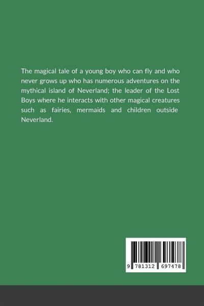 The magical tale of a young boy who can fly and who never grows up who has numerous adventures on the mythical island of Neverland; the leader of the Lost Boys where he interacts with other magical creatures such as fairies and mermaids and children outside Neverland.
