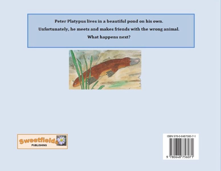 A platypus is an Australian native animal that was first thought to be made up by the discoverer. Peter lives in the riverbank of his pond, and meets a crocodile. He soon learns that not all the inhabitants of his home are friendly, and you must use care when you pick your friends. The illustrations are beautiful, and children will love looking at them.