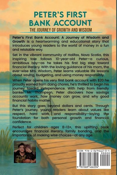 Peter's First Bank Account: A Journey of Wisdom and Growth is a heartwarming and educational story that introduces young readers to the world of money in a fun and relatable way. Set in the vibrant community of Halifax, Nova Scotia, this inspiring tale follows 10-year-old Peter-a curious, ambitious boy-as he takes his first big step toward financial literacy. With the loving guidance of his mom, the ever-wise Mrs. Wisdom, Peter learns valuable life lessons about saving, budgeting, and using money responsibly. When Peter opens his very first bank account with $20 he proudly earned from doing chores, he's thrilled to begin his journey toward independence. With help from friendly banker Mr. Thompson, Peter discovers how savings accounts work, how money can grow, and why good financial habits matter. But this story goes beyond dollars and cents. Through Peter's journey, young readers learn about values like respect, hard work, and responsibility-laying the foundation for both personal growth and financial confidence. Perfect for children ages 8-13+, this uplifting book encourages financial literacy, family bonding, and the importance of making wise choices-at any age. iiiTABLE OF CONTENT