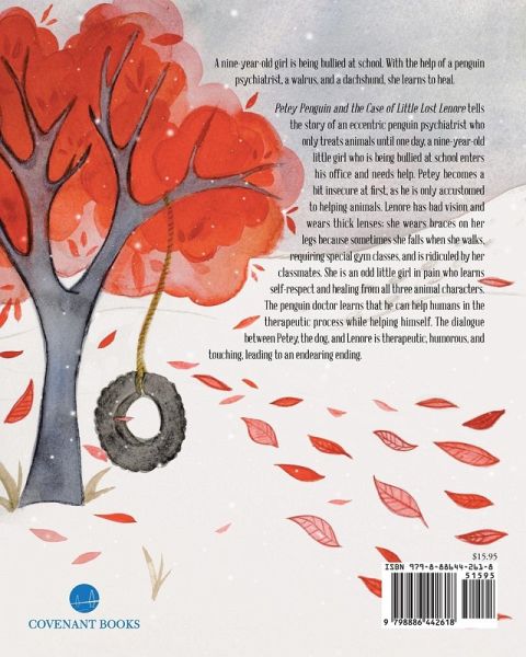 A nine-year-old girl is being bullied at school. With the help of a penguin psychiatrist, a walrus, and a dachshund, she learns to heal. Petey Penguin and the Case of Little Lost Lenore tells the story of an eccentric penguin psychiatrist who only treats animals until one day, a nine-year-old little girl who is being bullied at school enters his office and needs help. Petey becomes a bit insecure at first, as he is only accustomed to helping animals. Lenore has bad vision and wears thick lenses; she wears braces on her legs because sometimes she falls when she walks, requiring special gym classes, and is ridiculed by her classmates. She is an odd little girl in pain who learns self-respect and healing from all three animal characters. The penguin doctor learns that he can help humans in the therapeutic process while helping himself. The dialogue between Petey, the dog, and Lenore is therapeutic, humorous, and touching, leading to an endearing ending.