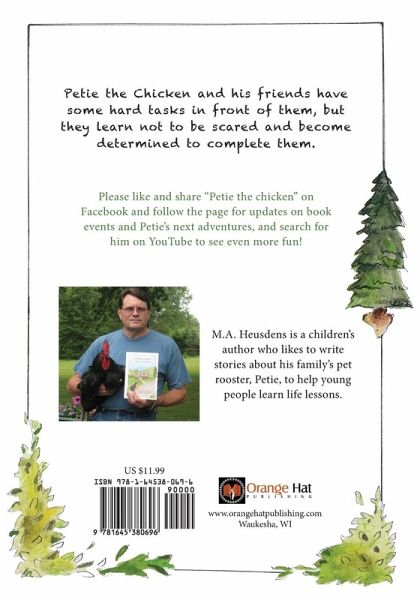 Petie the Chicken and his friends have some hard tasks in front of them, but they learn not to be scared and become determined to complete them. Please like and share "Petie the chicken" on Facebook and follow the page for updates on book events and Petie's next adventures, and search for him on YouTube to see even more fun!