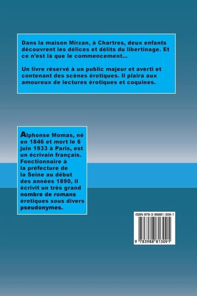 Dans la maison Mirzan, à Chartres, deux enfants découvrent les délices et délits du libertinage. Et ce n'est là que le commencement... Un livre réservé à un public majeur et averti et contenant des scènes érotiques. Il plaira aux amoureux de lectures érotiques et coquines.