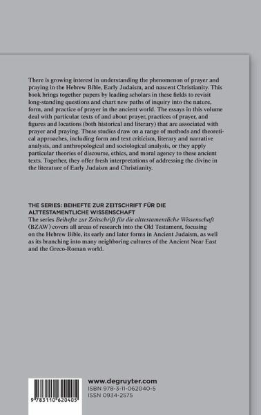 This volume contributes to the growing interest in understanding the phenomenon of prayer and praying in the Hebrew Bible, Early Judaism, and nascent Christianity. Papers by the leading scholars in these fields revisit long-standing questions and chart new paths of inquiry into the nature, form, and practice of addressing the divine in the ancient world.