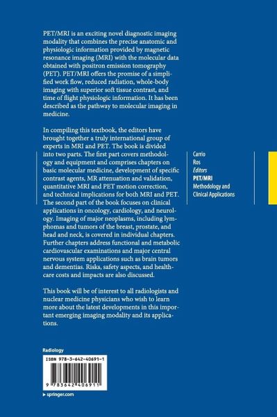 In compiling this textbook on the exciting novel imaging modality of PET/MRI, the editors have brought together a truly international group of experts in the field. The book is divided into two parts. The first part covers methodology and equipment and includes chapters on basic molecular medicine, contrast agents, MR attenuation and validation, and quantitative MRI and PET motion correction. The second part of the book focuses on clinical applications in oncology, cardiology, and neurology. Imaging of major neoplasms is covered in a series of individual chapters. Further chapters address functional and metabolic cardiovascular examinations and major central nervous system applications such as brain tumors and dementias. This book will be of interest to all radiologists and nuclear medicine physicians who wish to learn more about the latest developments in this important emerging imaging modality and its applications.